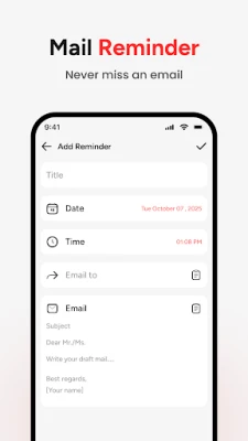 Never miss important email again with built-in reminders. Set a reminder to send or follow up on emails at the right time. Whether it’s a client update, job application, or personal message, your email app keeps you on track.