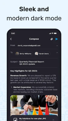 • One-stop e-mail: receive and send e-mails, share photos, documents and attachments in more formats.