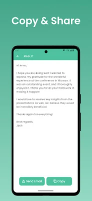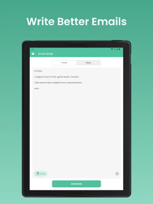 Our AI text generation capabilities ensure that you always have the right words. As the best email writing app, Email Writer is your go-to email maker app for crafting professional emails. It's an email example app that teaches you email etiquette and provides formal email samples.