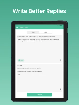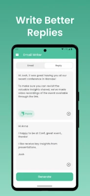 The auto email creator feature acts as your personal email creator, generating emails with ease. If you need to write email English content, just tell the app to "write for me," and it will deliver. The mail reply and mail assistant features make managing your inbox effortless.