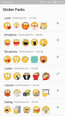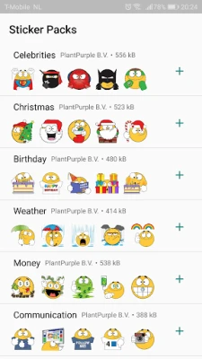 1. Tap the "+" icon next to the sticker category you'd like to add and confirm.