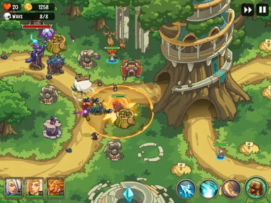 Fight on the Woodland Forest, Greywater Swamp, Slate Mountain, Khazard Valley and other terrains. Use your tactics to build towers, command powerful heroes to defend the Kingdom from the rush and vengeance of enemies!