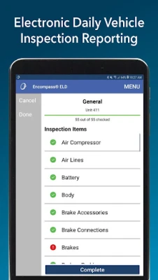 The Encompass® ELD app is compliant with ELD (Part 395 Subpart B and Part 395 Appendix) rules. The electronic logging device is on the FMCSA ELD registry. The Encompass® ELD app is part of the J. J. Keller® Encompass® Fleet Management System, which uses the J. J. Keller® electronic logging device and the Encompass® back office portal.