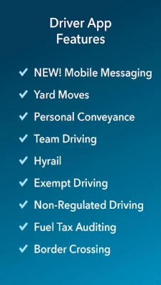 HOS COMPLIANCE ALERTS - App continuously checks drivers’ hours against the current DOT hours-of-service rules and company rulesets, and alerts drivers of impending violations.