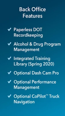 DOT DRIVER AND VEHICLE COMPLIANCE RECORDKEEPING – Includes Encompass back-office DOT driver and vehicle compliance recordkeeping features for driver qualification, alcohol and drug program management, hiring, and more.