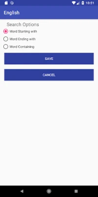 - "Search Options" feature that help to search the word "Starting" with searching word or "Ending" with searching word or "Containing" the searching word.