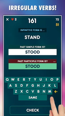 • Past Tenses: Master English past tenses the fun way! Test your skills in challenging modes or practice at your own pace. Track progress and compete globally!
