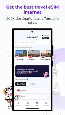 Esimatic™ is the all-in-one app for instant mobile internet service access worldwide. With one travel eSIM, stay connected in over 200+ countries including popular destinations across Europe, North America, Asia, and more.