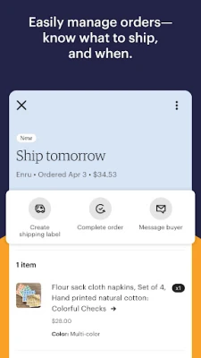 Etsy Seller is the newest way to manage your shop on the go. It’s got everything you need to easily respond to customers, create and edit listings, see your shop stats, and manage your orders.