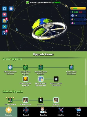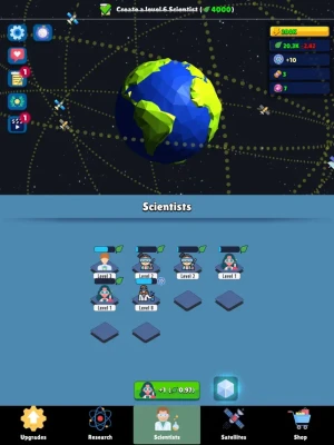 Discover the wonders of space in this immersive idle game that blends captivating storytelling with addictive gameplay mechanics. Merge scientists to level them up and unlock a variety of resources like food, science, and economics. Level up satellites to produce energy and computing power. Unlock upgrades to enhance your resource generation and expand your capabilities. Unleash the potential of the Research Center, where you can delve into over 50 researches for unique benefits.
