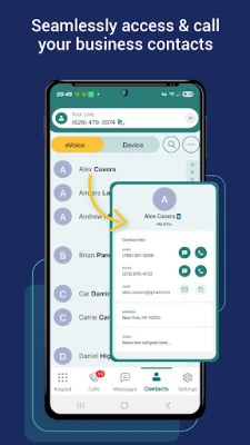 • Access Phone Contacts: Easily call and text your existing phone contacts directly from within the eVoice app, simplifying your workflow.