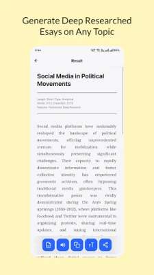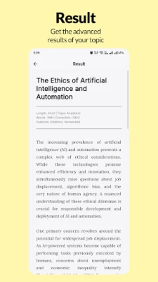 • Rich Text Results: Your generated essay is presented in a clean format where you can see the word and character count instantly.