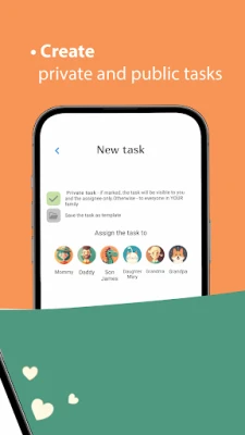 - Create tasks visible to everyone in the family or only to the person for whom the task is created