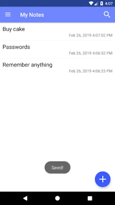 + Creating notes via notification + Password & fingerprint access + Does not require private permissions + Backup function