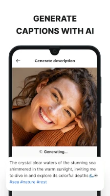 Harness the power of AI to automatically generate captivating descriptions for your Instagram posts! Simply provide a brief description of what you want, choose the language, tone of voice, and description length. You can generate more options if needed, and use the perfect text to make your post stand out!