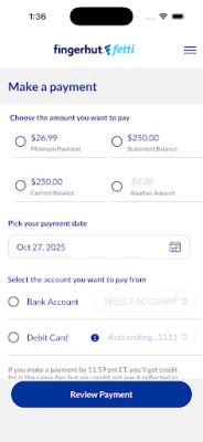 • View your available credit and current balance • Make payments on Fingerhut Fetti and Advantage accounts • Set up and view recurring payment schedules • Review past payments