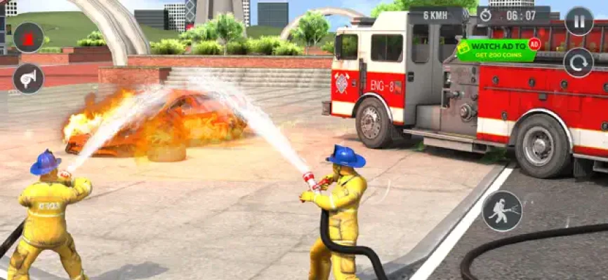 Dynamic Firefighting Gameplay: Use water hoses, ladders, and other tools to extinguish fires.