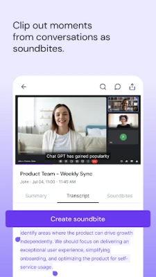 - Create soundbites and easily share the most memorable moments from meetings.