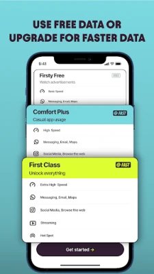 Firsty Basic – €0/month: Included basic data for essential apps like WhatsApp, iMessage, and Google Maps. Watch a short ad to keep data active.
