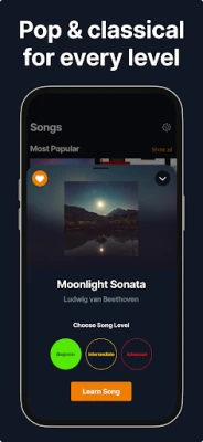 Choose from thousands of beautifully-arranged piano pieces covering all genres, including: Classical, Pop, Film & TV and more. With songs available in four difficulty levels, you’ll always find new pieces to play.