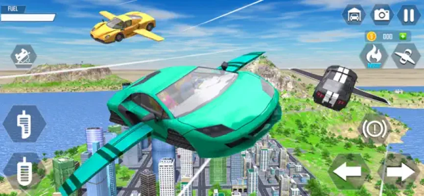 Become driver of ultimate flying cars in new exciting car flying simulator Flying Car Extreme Simulator by Best Free Games. Now drive hi-tech fast cars not only on city streets and asphalt roads but take your cars high in the sky and fly above busy city traffic just like flying an airplane. Get ready to drive brand new car and fly modern super sport cars in flight mode. Become driver cum flying pilot of flying simulator.In latest car driving game you can now improve your car flying skills. Now race on sky roads and be careful while flying through tall city buildings and skyscrapers. Fly your car with extreme speed by using nitro boost. With a press of a button transform your car into an amazing flying car. Enjoy flying simulation game in best flying car games and takeoff into the skies.