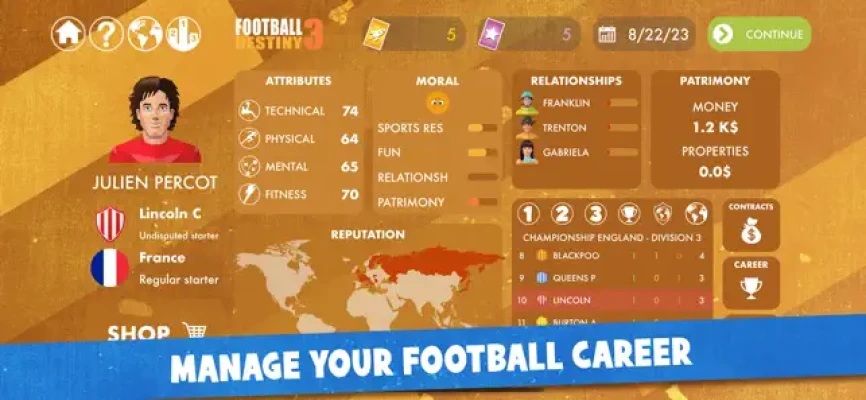 In Football Destiny 3, you'll start your career in a low-level club, with no reputation and few attributes. But train hard, make the right choices in matches, and take the right decisions off the pitch, and the doors to the big clubs will open for you.