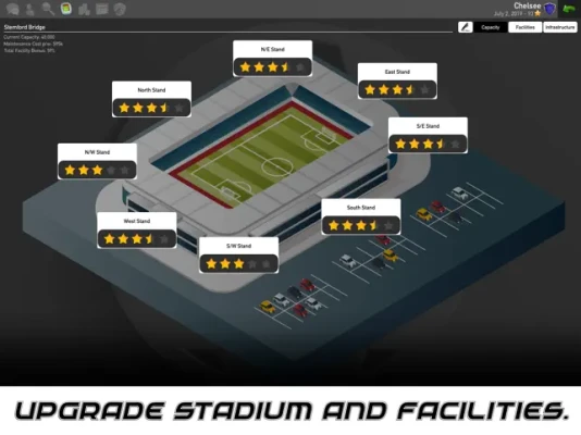 Make life easy and select an established club with superior finances, huge fan base, excellent facilities and a squad of talented players or really challenge yourself and select a lower league club with limited funds, facilities and squad depth! Can you develop a small local team into one of the world’s biggest clubs?