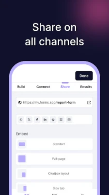 Integrate your favorite applications with forms.app’s mobile via Zapier. For example, get notifications on Slack anytime your form is filled in or generate leads by integrating your forms with Pipedrive.