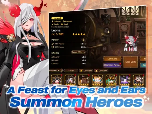 As you gather allies, you’ll customize your fortress to your own taste and explore dungeons in vast worlds. Defeat your enemies and grow stronger even faster! Plus, the chemistry between heroes and eye-catching graphics will keep you engaged and wanting more.