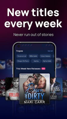 • Explore various romance genres and tropes like dark romance, enemies-to-lovers, billionaire romance, age gap, romantic suspense, and more.