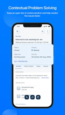 Create, respond, assign, and manage tickets on the fly for unparalleled convenience. You can edit the ticket, modify ticket properties, respond to it, close it, merge it with another ticket, and even execute scenario automations.