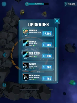 - Mineral Mining: Explore different space zones and asteroids fields to find valuable resources. - Sell and Upgrade: Sell mined minerals to upgrade your ship and enhance its efficiency. - Space Battles: Fight against enemy ships. - Quests: Complete various tasks to earn additional rewards. - Galaxy Exploration: Discover new galaxies with unique resources and enemies.