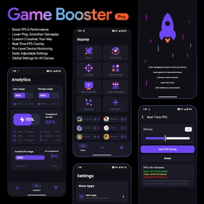 Boost your gaming performance with Game Booster Pro. Enhance FPS, lower lag, customize your crosshair, and monitor device stats in real time—all in one app.