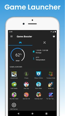 The Game Booster Pro app organizes all your favourite games in one place. It allows you to launch your favourite games from within the app.