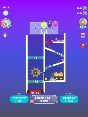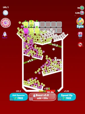 Create spawners and merge them to optimize earnings and break time. If you see some non breaking closed doors, make them opened by trigger some buttons. Try not to squeze balls for avoiding potential locks. By one level to another, you will feel more challenging.