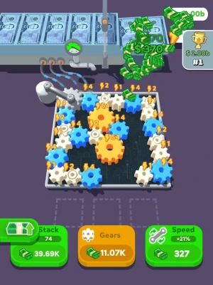 Merge gears to upgrade them and gain more.