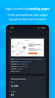 Marketing Analytics – make informed business decisions backed by detailed input from your emails, landing pages, or sales funnels. Access all this data from your mobile and stay one step ahead.