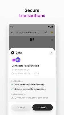 Glow is the easiest way to get started on Solana. Set up your wallet in seconds to manage your assets, browse coins and collectibles, and transact effortlessly.