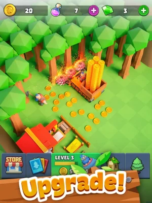 A unique take on idle games where players upgrade their properties and explore more fun and challenging levels by cutting trees. Acquire unique characters and develop them using cards to greatly increase your income and become the greatest lumber tycoon in Gold Valley!