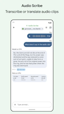 • Audio Scribe: Transcribe an uploaded or recorded audio clip into text or translate it into another language.