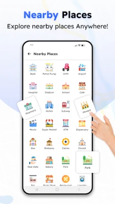 With Nearby search feature find the nearby places with ease. Find a gas station, ATM, restaurants, or hotel with accurate directions. Get to nearby places instantly and conveniently with GPS location.