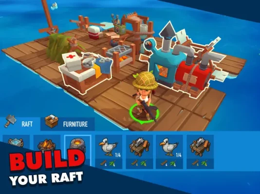 Build your raft, collect resources from the ocean and islands, craft vital items and equipment using the advanced crafting system and find unique recipes on islands. Become a real survivor!