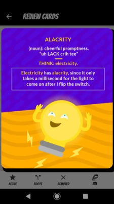 My name is Vince Kotchian, and I've been a GRE prep tutor since 2008. I've created several apps, books, and courses, and I teach both independently and on Gregmat. In this app, I've created flashcards for over 1300 GRE words and 160 word roots. Each vocab flashcard has a silly cartoon, a clear definition of the word with an example sentence, and a memorable mnemonic to make it easier to remember the word.