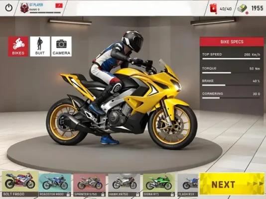 The bike race garage is a haven for riders. Choose the diverse collection of moto bikes, each with unique characteristics. Customize your rider with a lot of costumes, helmets, and accessories. Earn these items by playing ‘’GT bike Racing’’ or purchase them directly from the store."