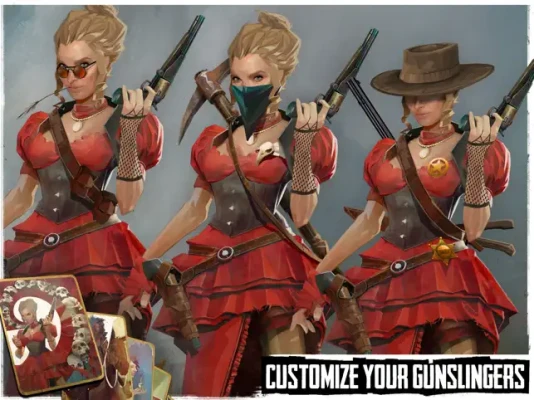 8+ gunslingers with special skills: The Outlaw, the Bounty Hunter, The Graverobber or the Marshall. Create a unique hero by using a combination of hundreds of accessories and find the perfect look.