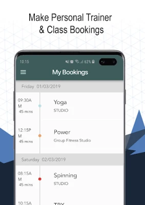 MANAGE YOUR BOOKINGS As well as booking classes, you can easily schedule a session with your personal trainer. You can check in on future bookings and make any changes as needed.