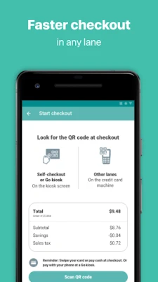 With the app, you can scan and bag your own items as you shop, make less contact with others, and save time at checkout in any lane.