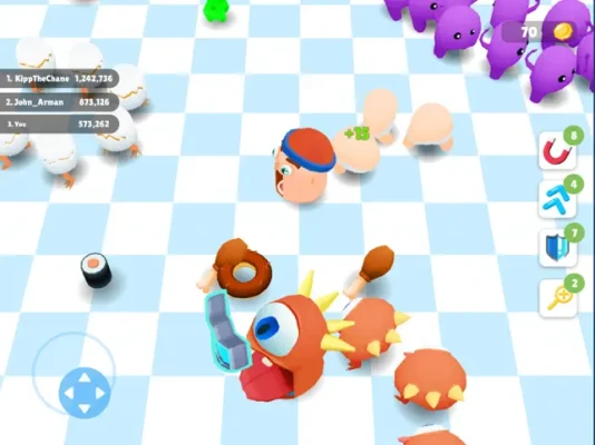 In addition to tasty treats, many boosters will be waiting for you in the arena. Speed up, use a food magnet, and become invincible! make your task to win the battle royale match much easier Collect all the boosters to get various bonuses and take down all enemies!