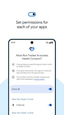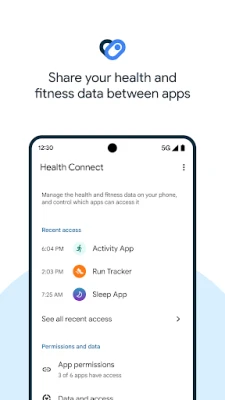 Update privacy settings in a few taps. Before a new app can access your data, you can review and choose what you want to share. If you change your mind, or want to see which apps recently accessed your data, find it all in Health Connect.