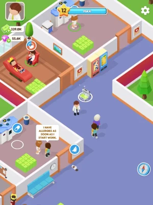 You need to hire doctors, nurses, cleaners, and other staff to run the hospital. Upgrade your hospital staff to enhance their abilities, and don't forget to wake up the employees who are slacking off or falling asleep!